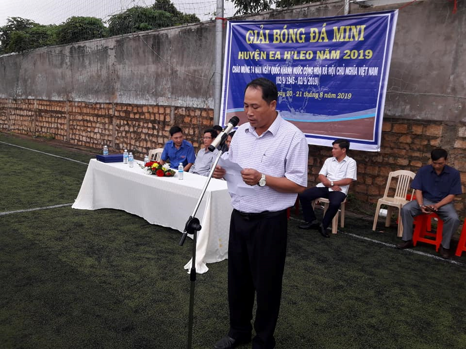 Trong không khí vui tươi, phấn khởi của toàn Đảng, toàn dân và toàn quân huyện Ea H’Leo đang ra sức thi đua sôi nổi, thiết thực lập thành tích chào mừng kỷ niệm 74 năm, Ngày Cách mạng tháng tám thành công (19/8/1945 – 19/8/2019) và Ngày Quốc khánh Nước Cộng hòa Xã hội Chủ nghĩa Việt Nam (02/9/1945 – 02/9/2019). Thực hiện theo ý kiến chỉ đạo của UBND huyện, Phòng Văn hóa và Thông tin phối hợp với UBND các xã, thị trấn tổ chức giải Bóng đá mini (nam, nữ) huyện Ea H’Leo năm 2019.