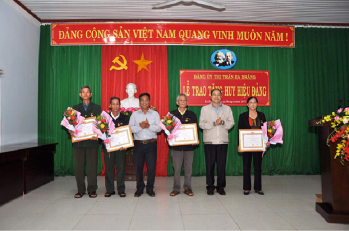 Đảng ủy thị trấn Ea Drăng, vừa tổ chức lễ trao huy hiệu đảng cho 8 đảng viên trong đảng bộ thi trấn. Tại buổi Lễ, thay mặt Ban thường vụ đảng ủy thị trấn, đồng chí Y Thắng Eban - Bí thư Đảng ủy đã trao tặng Huy hiệu đảng cho 8 đảng viên (trong đó có 2 đảng viên Đinh Văn Xuyên và đảng viên Nguyễn Ngọc Anh huy hiệu 30 năm tuổi đảng; huy hiệu 40 năm tuổi Đảng cho 4 đảng viên Mai Thị Phương; Lê Quang; Nguyễn Đăng Hường và Võ Văn Nghĩa; huy hiệu 45 năm tuổi đảng 02 đảng viên Nguyễn Tấn Quang và Lương Tú Huân).